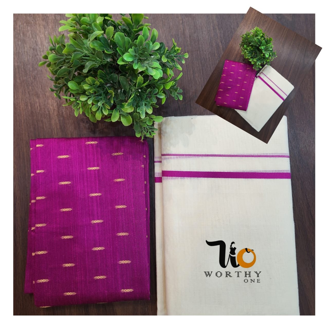 Set Mundu Saree – Pink